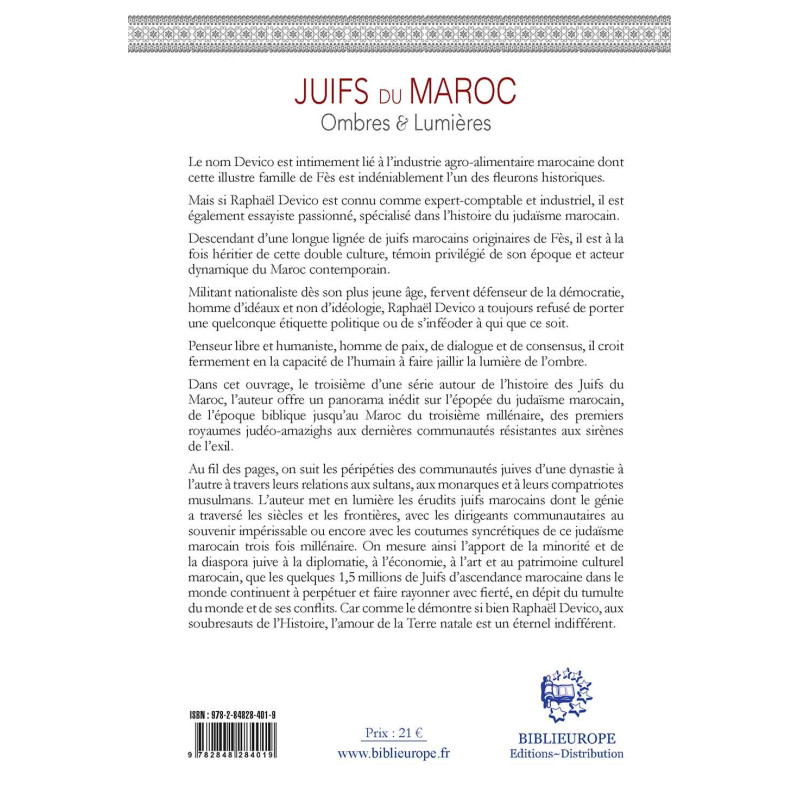 Au fil des pages, on suit les péripéties des communautés juives d’une dynastie à l’autre à travers leurs relations aux sultans, aux monarques et à leurs compatriotes musulmans. L’auteur met en lumière les érudits juifs marocains dont le génie a traversé les siècles et les frontières, avec les dirigeants communautaires au souvenir impérissable ou encore avec les coutumes syncrétiques de ce judaïsme marocain trois fois millénaire. On mesure ainsi l’apport de la minorité et de la diaspora juive à la diplomatie, à l’économie, à l’art et au patrimoine culturel marocain, que les quelques 1,5 millions de Juifs d’ascendance marocaine dans le monde continuent à perpétuer et faire rayonner avec fierté, en dépit du tumulte du monde et de ses conflits. Car comme le démontre si bien Raphaël Devico, aux soubresauts de l’Histoire, l’amour de la Terre natale est un éternel indifférent.