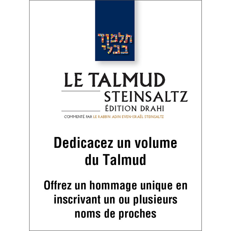Ce volume devient ainsi unique et symbolique, un témoignage de respect, de mémoire et de transmission, tout en participant à cette édition exceptionnelle du Talmud Steinsaltz.